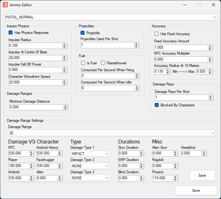 From here you will be presented with a variety of options which relate to the selected ammo type in the dropdown at the top of the window.
