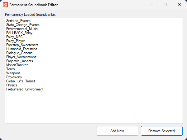 This list defines the soundbanks which are loaded at all times, regardless of the ones asked to be loaded via the scripting system.