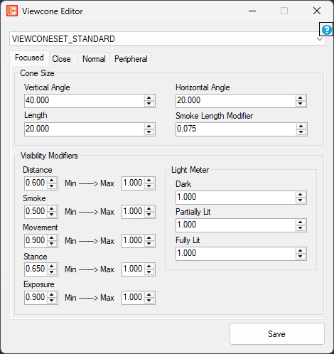 From here you will be presented with a variety of options which apply to the selected viewcone type in the dropdown at the top of the window.